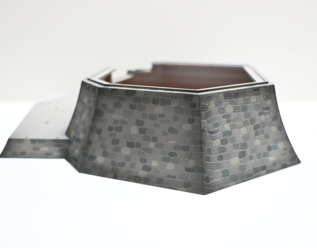 色々な色が混同した石垣に薄くクリアーブラックを吹き付ける事によってまとまり感が出ると同時にエッジ部を黒くする事で重量感が出るようにしました。